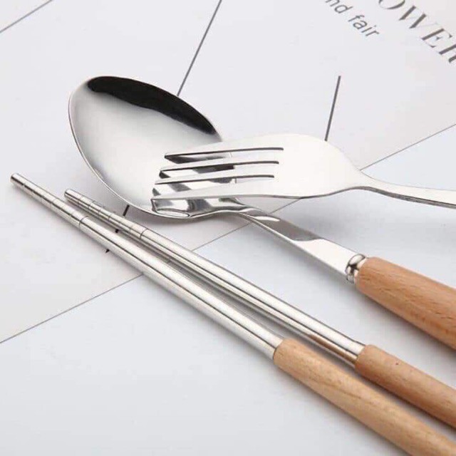 - Bộ gồm đũa, thìa và dĩa inox rất đẹp cán gỗ sồi, đựng trong 1 hộp nhựa lúa mạch sang trọng. Dùng mang cơm đi làm, mang đi du lịch hay picnic tiện lợi.
