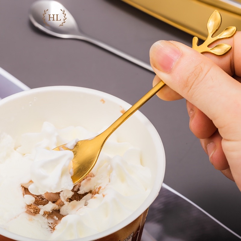 Thìa Nĩa Lá | Thìa rĩa hoàng kim tạo hình lá nguyệt quế chất liệu cao cấp không ăn mòn 2022