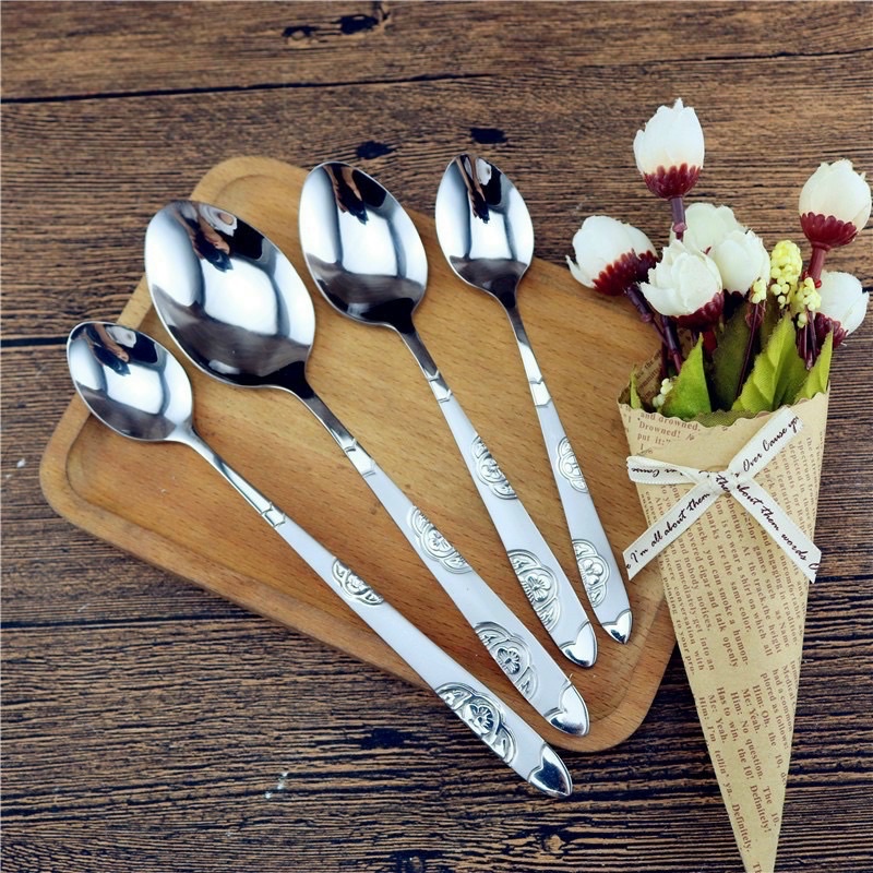 Giới thiệu Thìa nox cán hoa văn dày dặn cao cấp-S0019 ( sup hoa to)