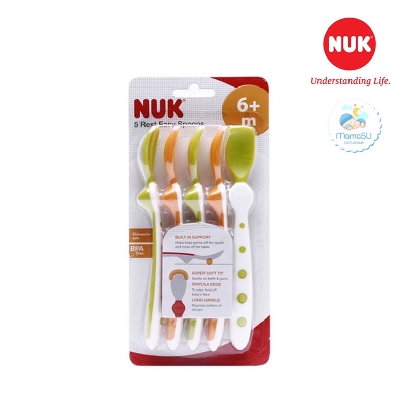 - NUK biết những gì là tốt nhất cho trẻ sơ sinh và trẻ em. Vì vậy, thìa mềm NUK cực kì an toàn với bé, không chứa thành phần BPA và sử dụng được với máy rửa bát.