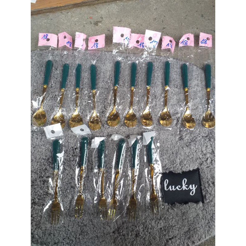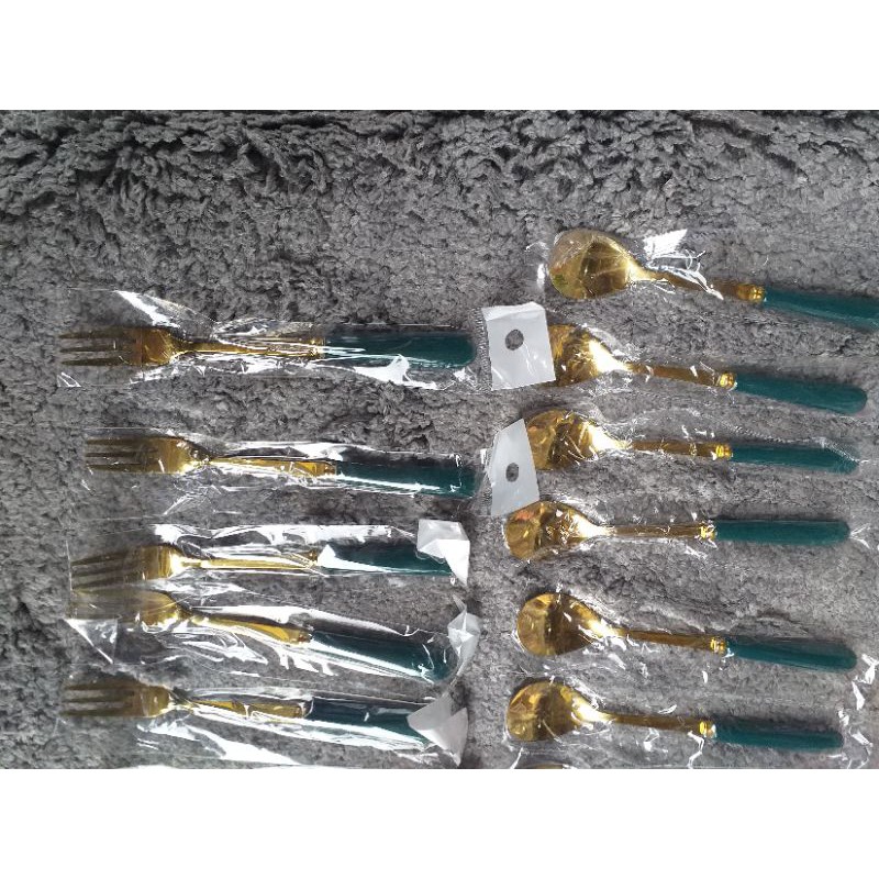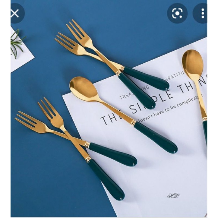 Nhà cửa & Đời sống > Bộ đồ bàn ăn > Bộ dao kéo || Thìa - rĩa cafe vàng cán sứ xanhCòn hàng