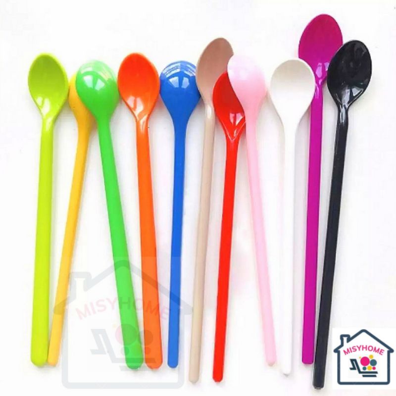 Giới thiệu Thìa sinh tố muỗng sinh tố thìa ăn chè trà chanh nước ép cán dài nhựa phíp nhiều màu màu đen song long fataco