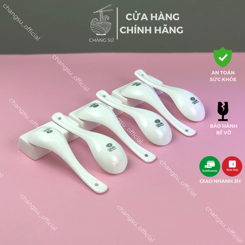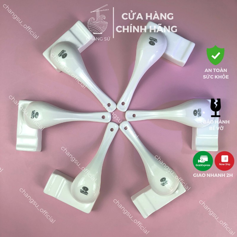 Bộ thìa sứ trắng cute dễ thương 6 muỗng ăn cơm cao cấp sứ Minh Châu - Vỡ 1 đổi 1
