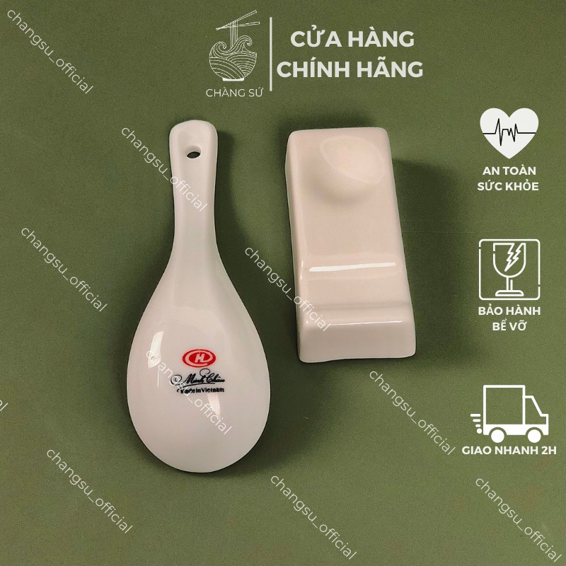 Thìa sứ trắng trơn và gác thìa đũa trắng trơn - Muỗng ăn dặm nhỏ dễ thương và gác đũa sứ Minh Châu