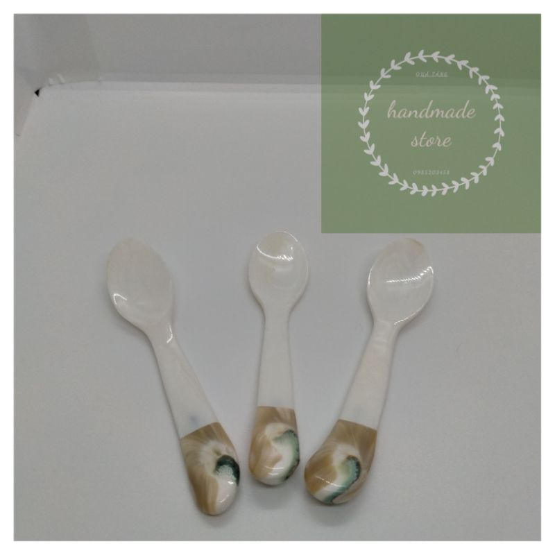 Nhà cửa & Đời sống > Dụng cụ nhà bếp > Cây vét bột & đồ gắp thức ăn || Thìa trai cán ốc xà cừ xanh - muỗng thìa trai cán xanhCòn hàng