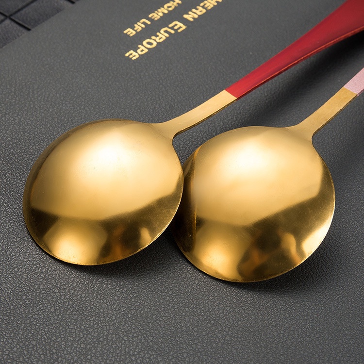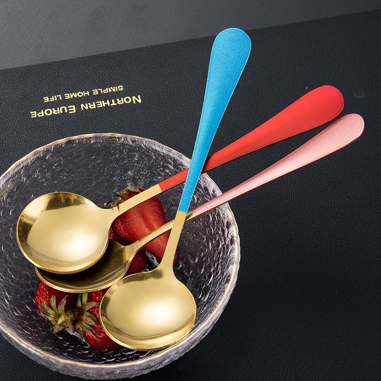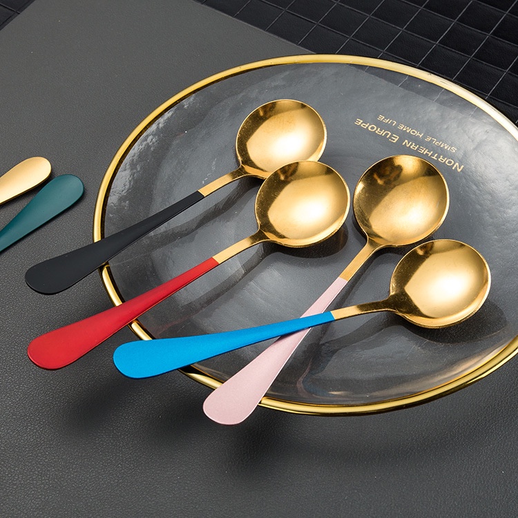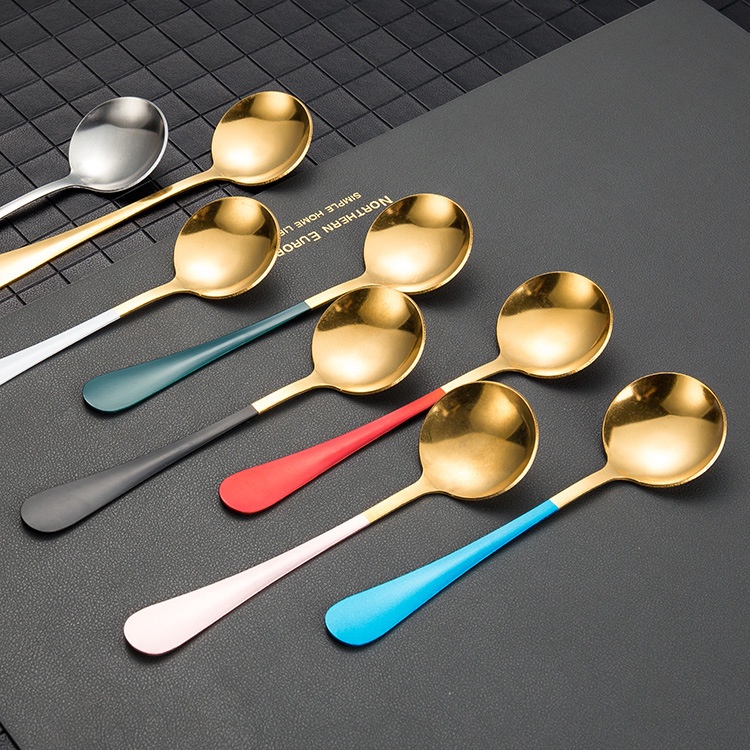 Nhà cửa & Đời sống > Bộ đồ bàn ăn > Bộ dao kéo || Thìa Tròn Inox Mạ Vàng Cán Dài Nhiều Màu Cao Cấp - Muỗng Ăn Cán Dài Chống Trượt DuashopCòn hàng