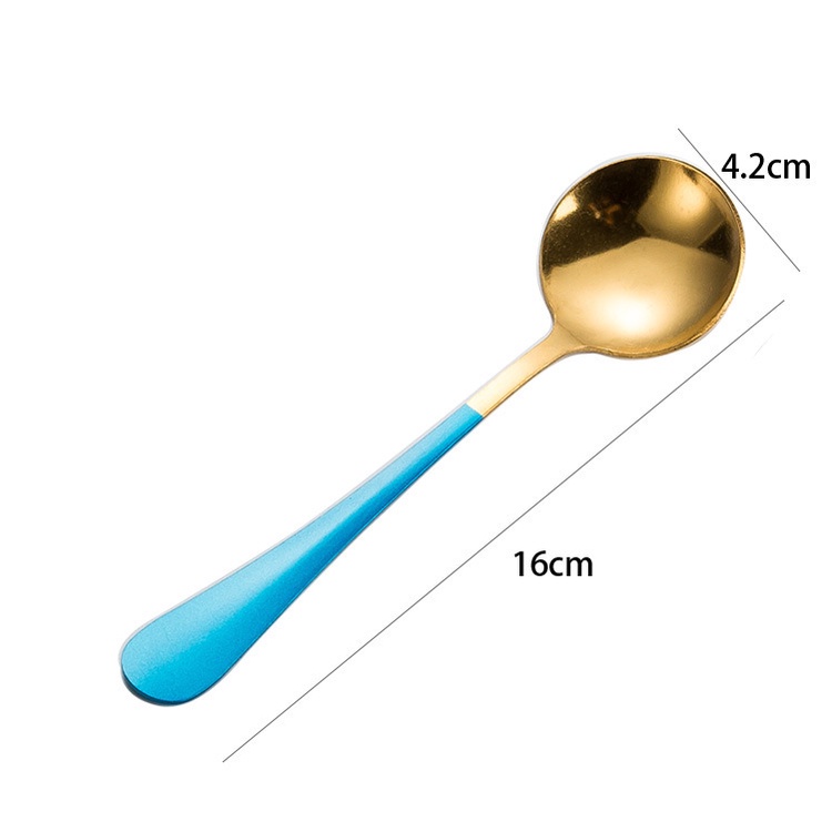 Thìa Tròn Inox Mạ Vàng Cán Dài Nhiều Màu Cao Cấp - Muỗng Ăn Cán Dài Chống Trượt Duashop