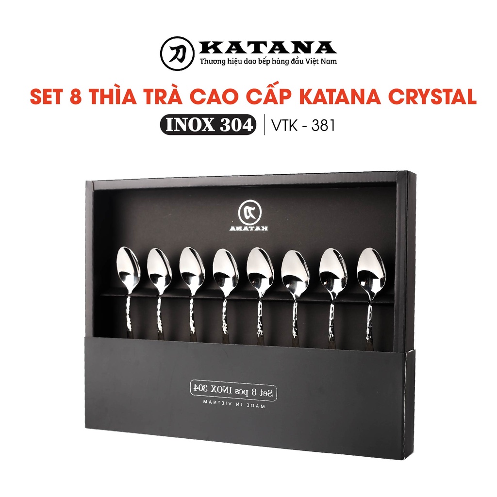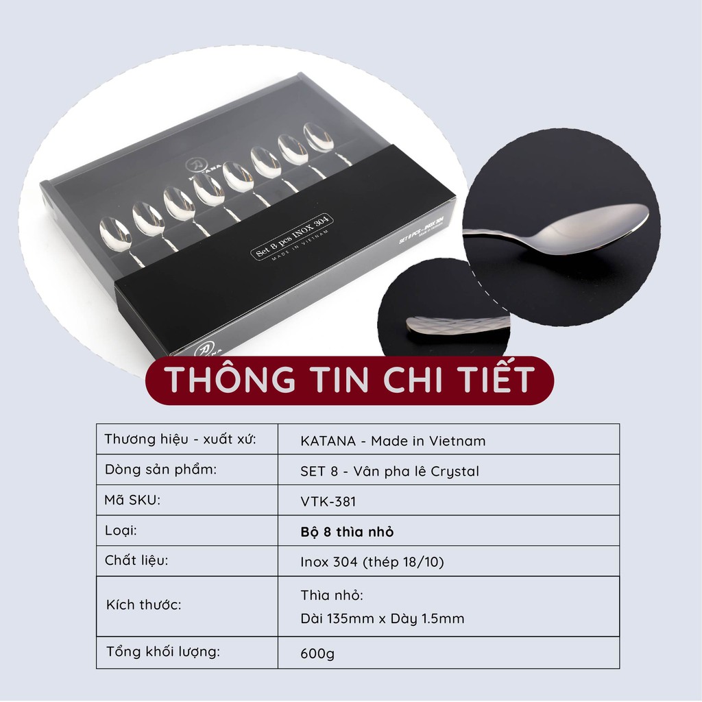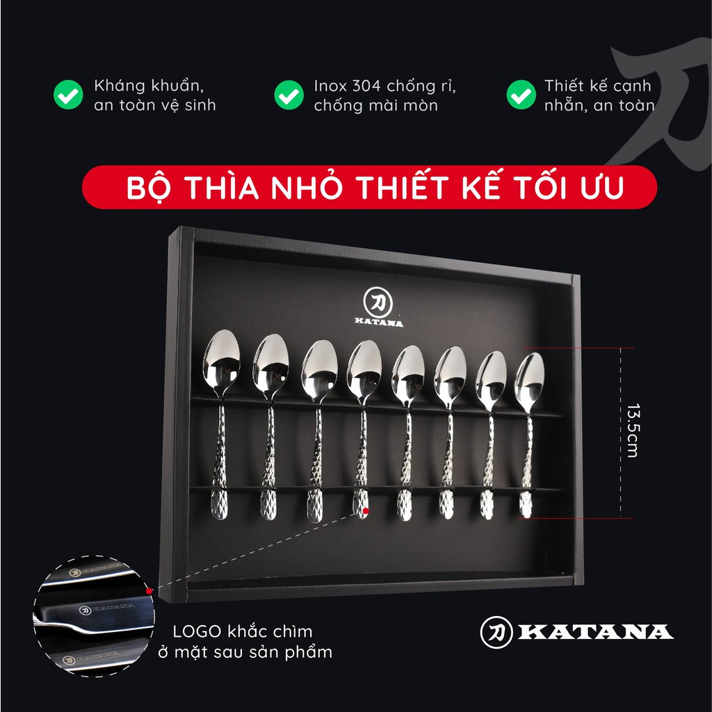 Bộ 8 chiếc thìa uống trà, cafe KATANA inox 304 chống gỉ, vân quả trám Crystal VTK381