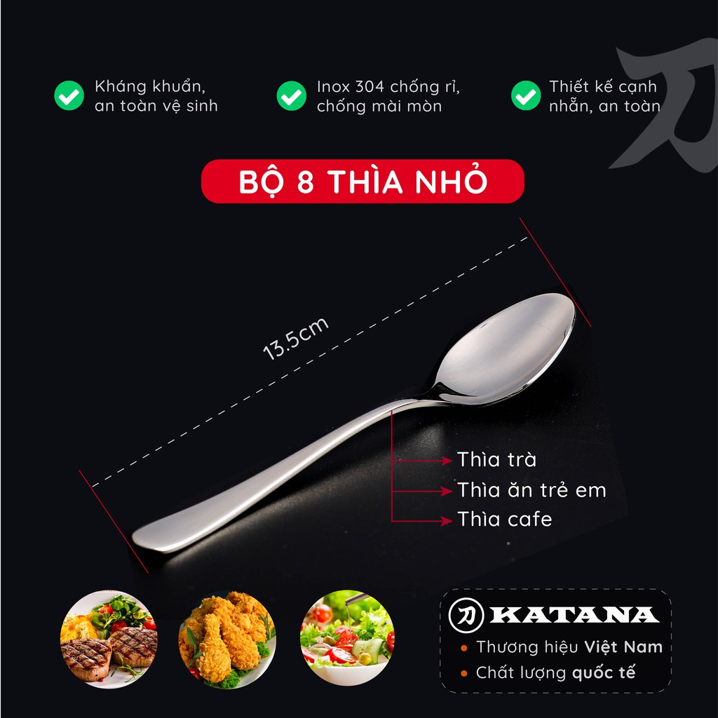 Bộ 8 chiếc thìa uống trà, cafe KATANA inox 304 chống gỉ vân trơn Elegance VTK281