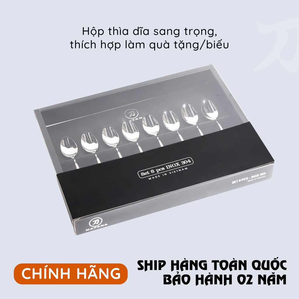 Nhà cửa & Đời sống > Bộ đồ bàn ăn > Dĩa || Bộ thìa uống trà, cafe inox vân trơn KATANA Elegance VTK281 8 mónCòn hàng