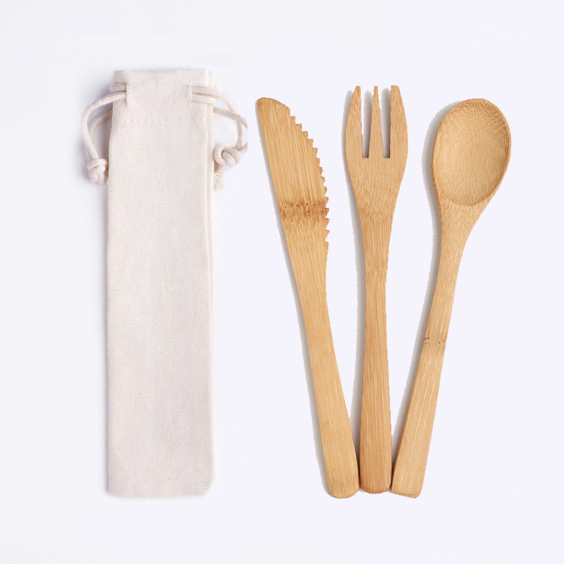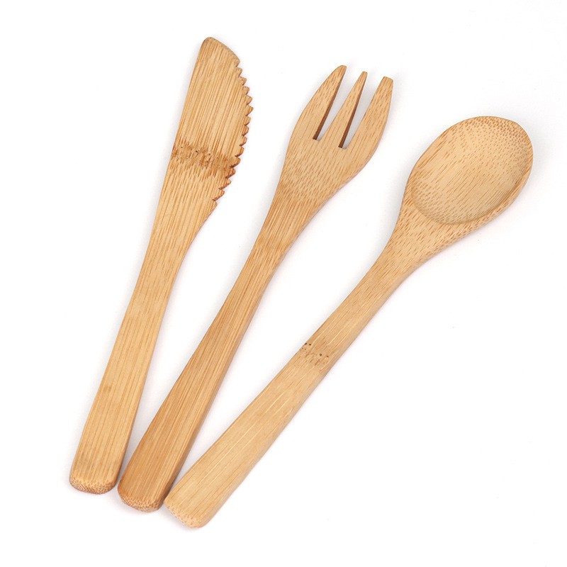 Bộ Thìa(Muỗng), Nĩa, Dao Bằng Gỗ Tre - Tặng Kèm Túi Vải