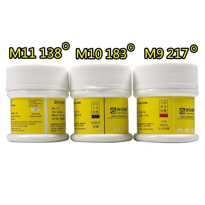 Đây là chì chuyên dùng cho hàn, đổ chân ic bằng vỉ tao chân trong lĩnh vực sửa chữa điện thoại, điện tửThiếc/ chì Amaoe mã M11 nhiệt độ 138°C (điểm nóng chảy)