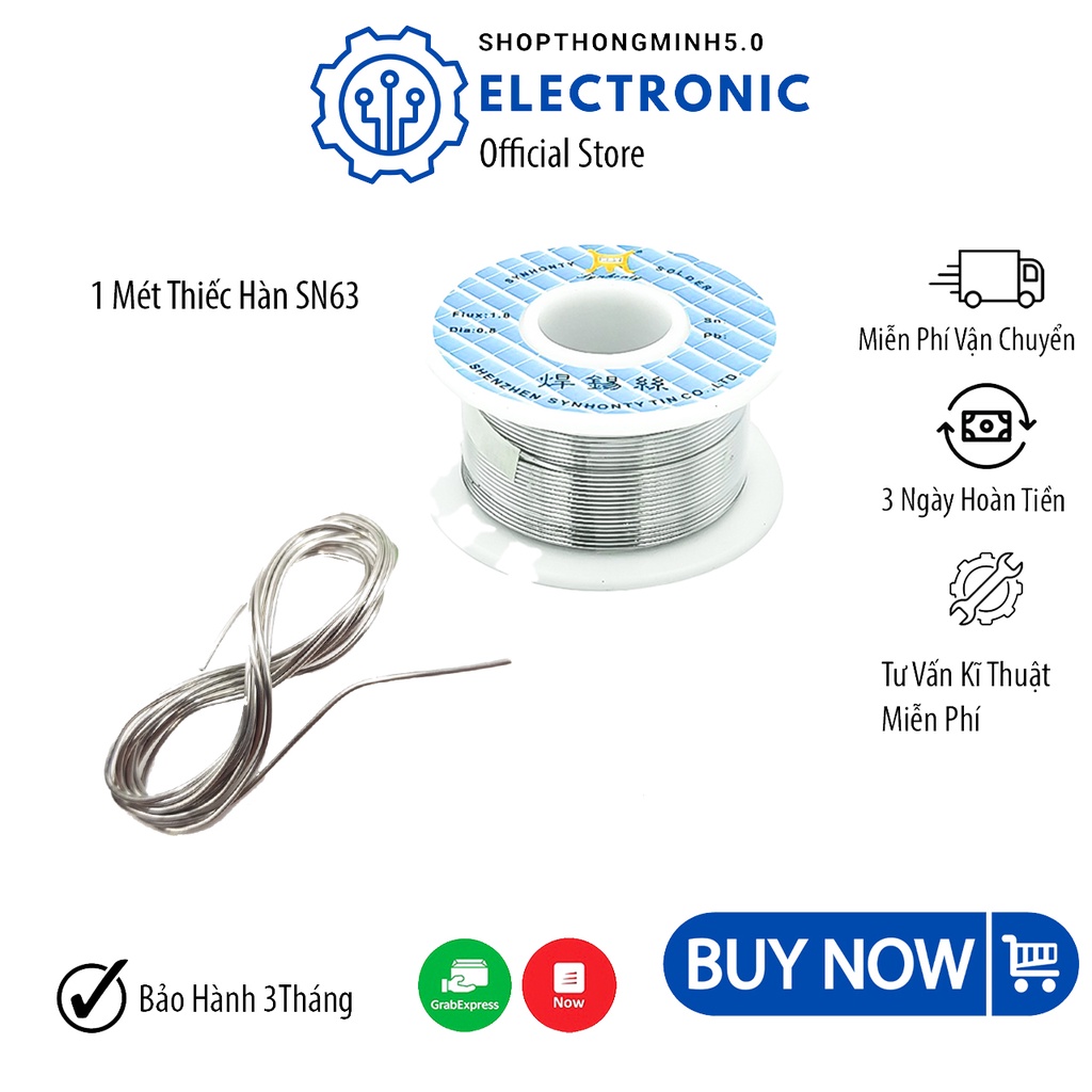 Nhà cửa & Đời sống > Dụng cụ & Thiết bị tiện ích > Dụng cụ > Dụng cụ hàn điện || Thiếc Hàn 0.8MM SN63 Hàn Bóng 1 MétThiếc SN63 sợi 0.8mm chuyên dụng cho mạch điệnCòn hàng