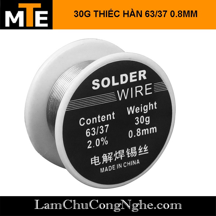 Sản phẩm bao gồm 2 phân loại:- 30G Thiếc hàn 63/37 0.8mm flux 2%