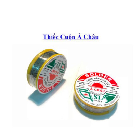 - Thiếc hàn Á Châu 0.8mm Sn63 16g (loại nhỏ), thiếc rất dễ hàn, dễ nóng chảy, độ bóng cao, không bị xỉn màu, chống oxy hóa khi để thời gian dài.