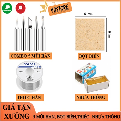 Thiếc hàn, nhựa thông, bọt biển, miếng gác mỏ hàn, mũi hàn giá rẻ