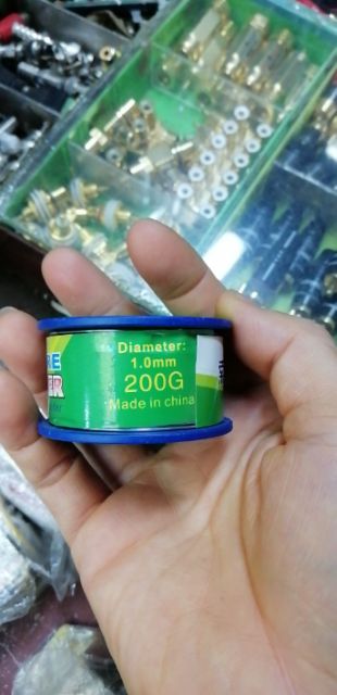 Là loại thiếc hàn loại sịn. Nặng 200g.Sợi thiếc có kích thước 1ly