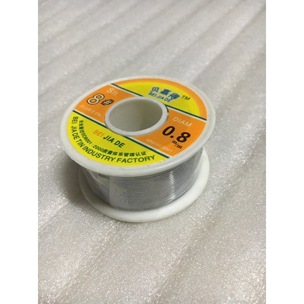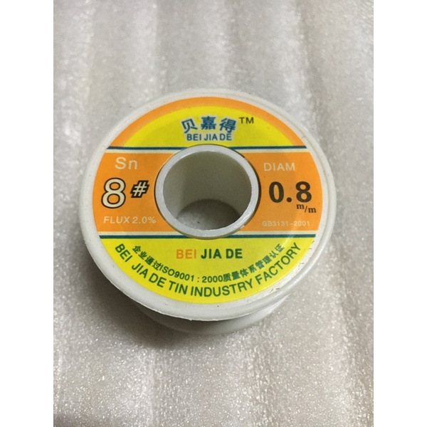 Sản phẩm thiếc hàn : SOLDER BEI JIA DE 0.8mm - cuộn 100gm cả lõi.Thiếc hàn là một sản phẩm không thể thiếu trong các ngành điện tử, thiếc hàn đóng vai trò quan trọng để tạo nên một mạch điện tử hoạt động tốt và có vẻ ngoài chuyên nghiệp. Ngoài ra thiếc hàn còn có một số ứng dụng tuyệt vời khác,... Tầm quan trọng của thiếc hàn được nhắc đến rất nhiều nên các yêu cầu kĩ thuật cũng rất khắt khe. Chúng tôi xin giới thiệu một sản phẩm đáp ứng được hầu hết tất cả các yêu cầu mà người dùng mong muốn.