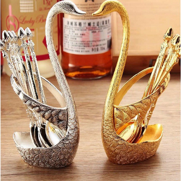 Nhà cửa & Đời sống > Trang trí nhà cửa > Khác || Thiên nga trang trí giỏ đựng dĩa thìa chất liệu hợp kim màu vàng / bạc - Phụ kiện bàn ăn phòng khách sang trọngCòn hàng