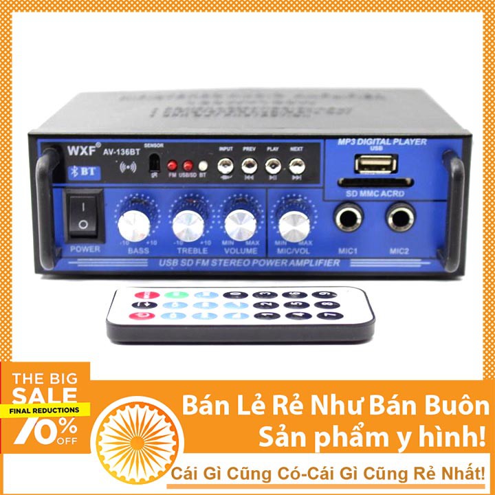 Thiết Bị Âm Thanh > Amply và đầu chỉnh âm || Thiết Bị Âm Thanh Ampli Mini Karaok AV-136BT 12V-220VCòn hàng