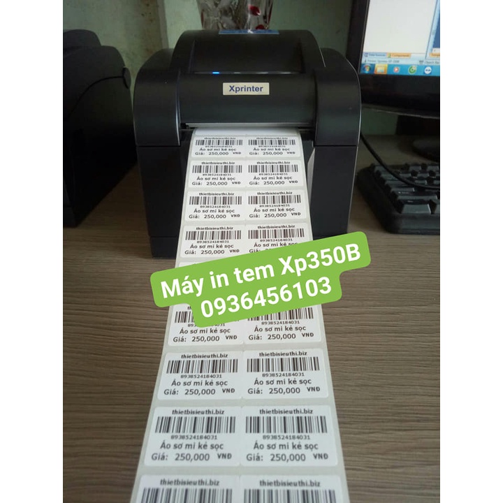 🍀 Máy in tem mã vạch: Máy in tem mã vạch Xprinter XP 350B: Được sử dụng để in tem mã dán lên sản phẩm từ phần mềm bán hàng V POS, sử dụng vô cùng đơn giản, thiết kế nhanh chóng. Giúp in thông tin để dán lên sản phẩm: Tên cửa hàng, tên sản phẩm, giá bán...