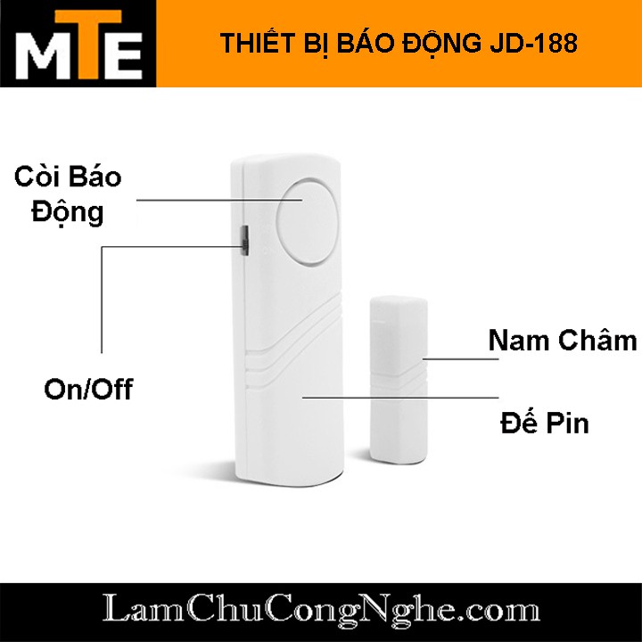 - Thiết bị báo động chống trộm cửa hoạt động bằng 2 pin tiểu AAA, gồm 2 bộ phận được đặt gần nhau, có tác dụng phát hiện ra kẻ gian mở cửa và phát tín hiệu báo động.