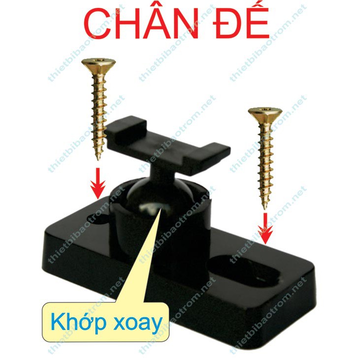 Lắp đặt : Lắp đế và thiết bị sau đó dùng vít cố định vào tường với độ cao khoảng 2- 3 mét, tránh để mắt cảm ứng cúi xuống đất gây tình trạng báo động giả khi phát hiện chó hoặc mèo nuôi trong nhà.