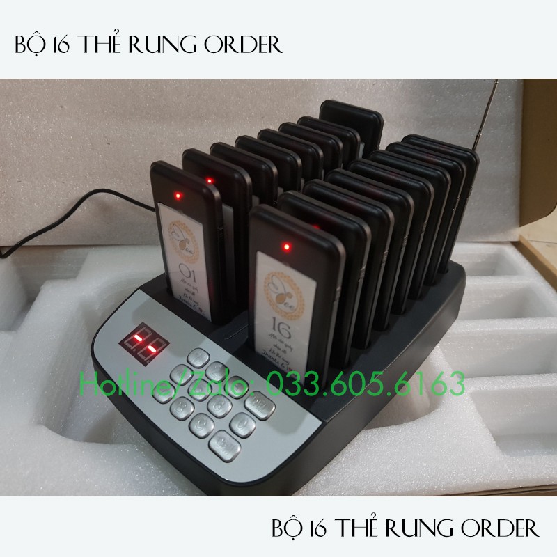 Thiết bị báo rung tự phục vụ Full 16 thẻ gọi báo rung chuông tầm xa phủ sóng 1000m2