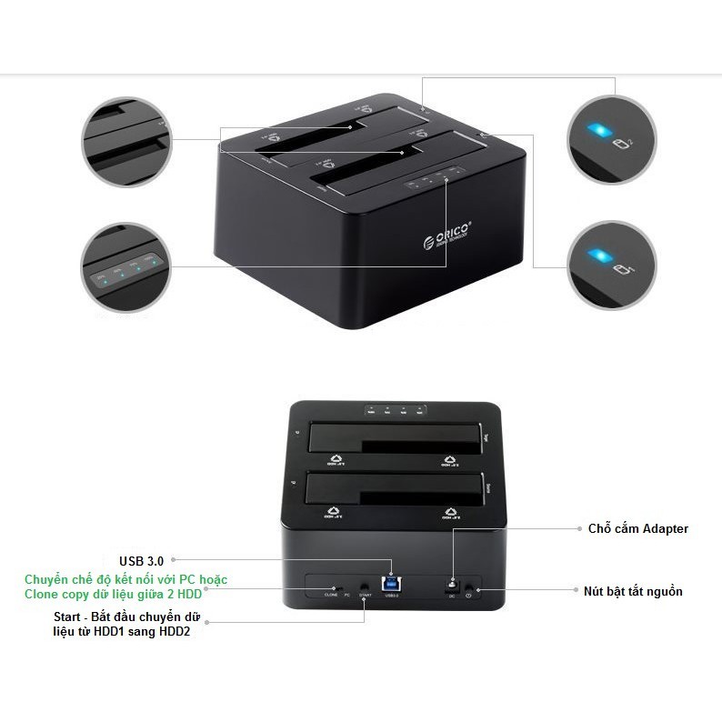 Thiết bị cắm nóng ổ cứng 2 cổng ORICO 6629US3-C phiên bản có cloneChi tiết sản phẩm