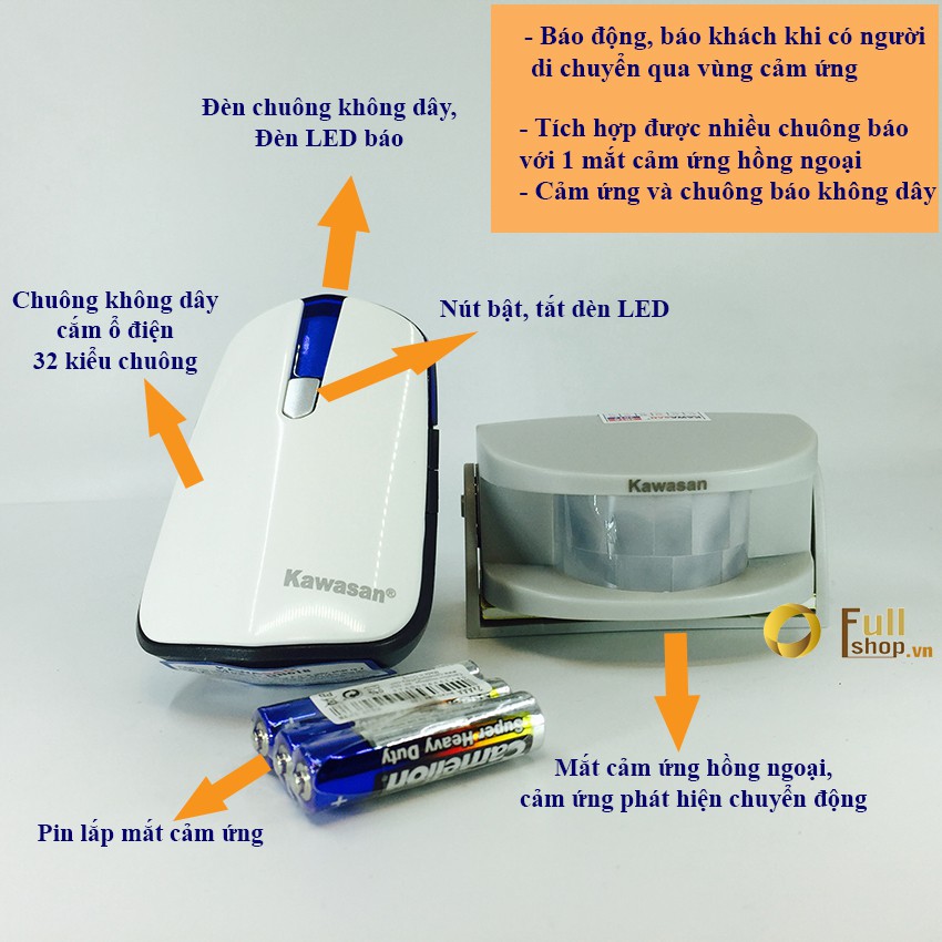 Thiết Bị Điện Gia Dụng > Mạch điện & Phụ tùng > Chuông cửa || Thiết Bị Cảm Ứng Báo Khách Không Dây KAWASAN KW - I618Còn hàng