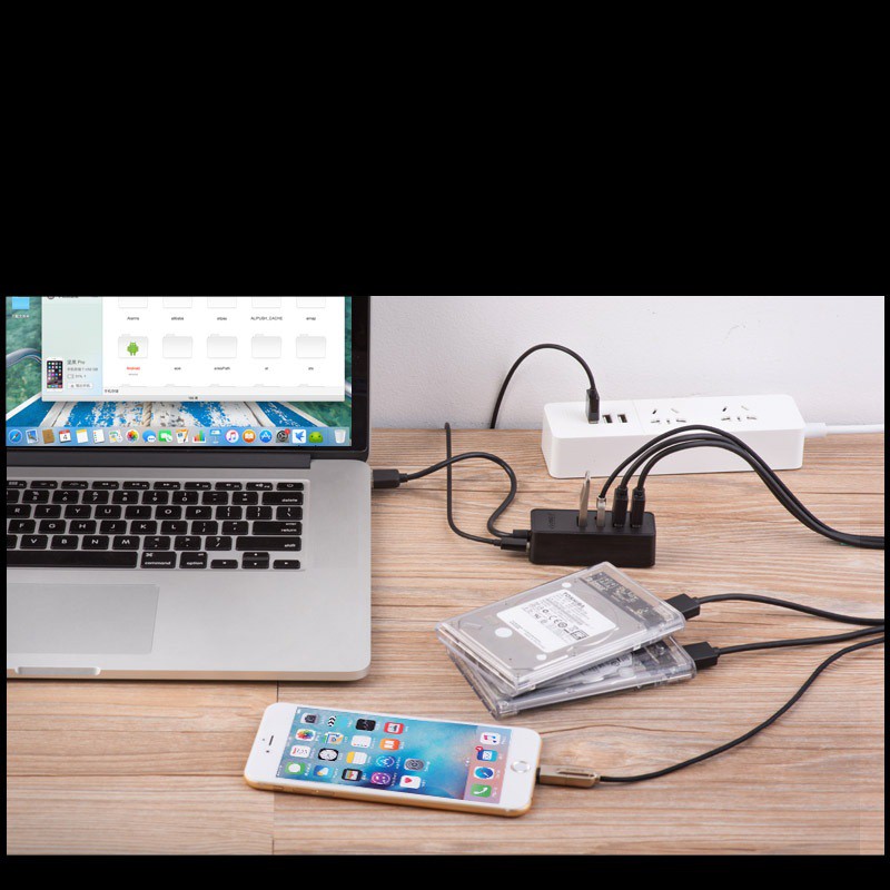 Sản phẩm trang bị bộ chia 4 cổng 3.0 giúp kết nối máy tính với các thiết bị ngoại vi như usb, chuột, bàn phím, máy in, điện thoại, laptop, tablet,...
