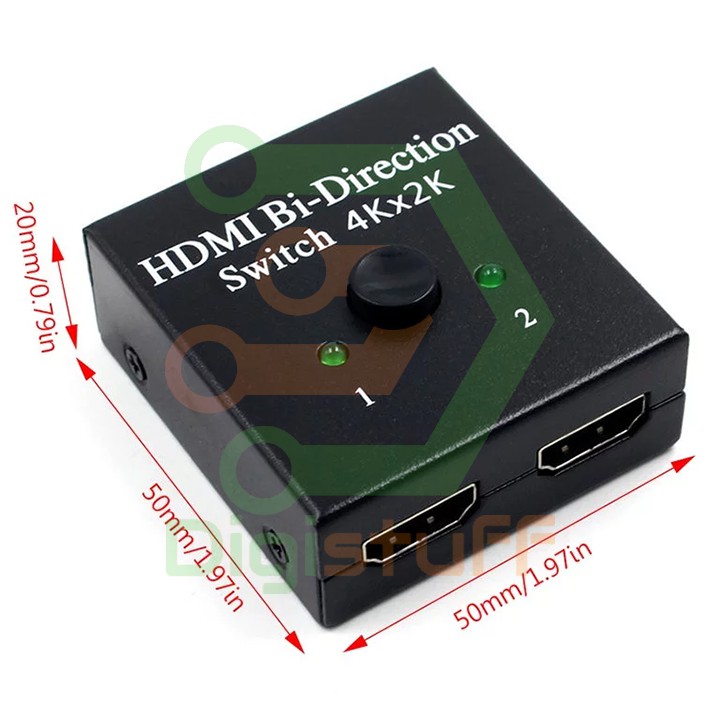 Thiết bị chia kết nối HDMI giúp bạn có thể kết nối 2 thiết bị phát tín hiệu HDMI (máy vi tính, máy chơi game, đầu ghi camera...) cùng dùng chung một màn hình hoặc kết nối theo chiều ngược lại: một thiết bị phát tín hiệu HDMI đến 2 màn hình (có nút chuyển đổi qua lại tín hiệu giữa 2 màn hình, ko phát hình ảnh ra 2 màn hình cùng lúc). Việc cho phép tín hiệu truyền 2 chiều giúp bạn thuận tiện hơn và tiết kiệm chi phí nếu muốn chuyển đổi mục đích sữ dụng sau này. Đặc biệt, thiết bị chỉ cần cắm dây HDMI là sữ dụng, không cần cấp nguồn riêng.