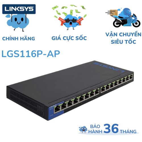 Máy tính & Laptop > Thiết Bị Mạng > Bộ chia mạng || Thiết Bị Chia Mạng Linksys LGS116P UNMANAGED 16-PORT POE+ BUSINESS GIGABIT SWITCHCòn hàng