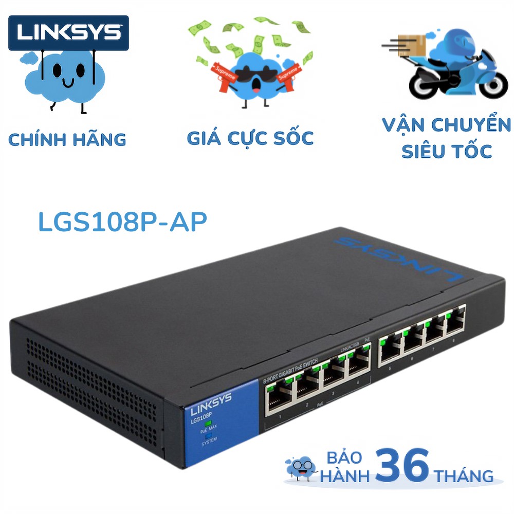 Máy tính & Laptop > Thiết Bị Mạng > Bộ chia mạng || Thiết Bị Chia Mạng Linksys LGS108P-AP UNMANAGED 8-PORT POE+ BUSINESS GIGABIT SWITCHCòn hàng