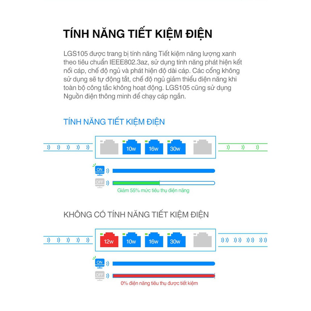• Đạt chuẩn tiết kiệm năng lượng EEE 802.3az