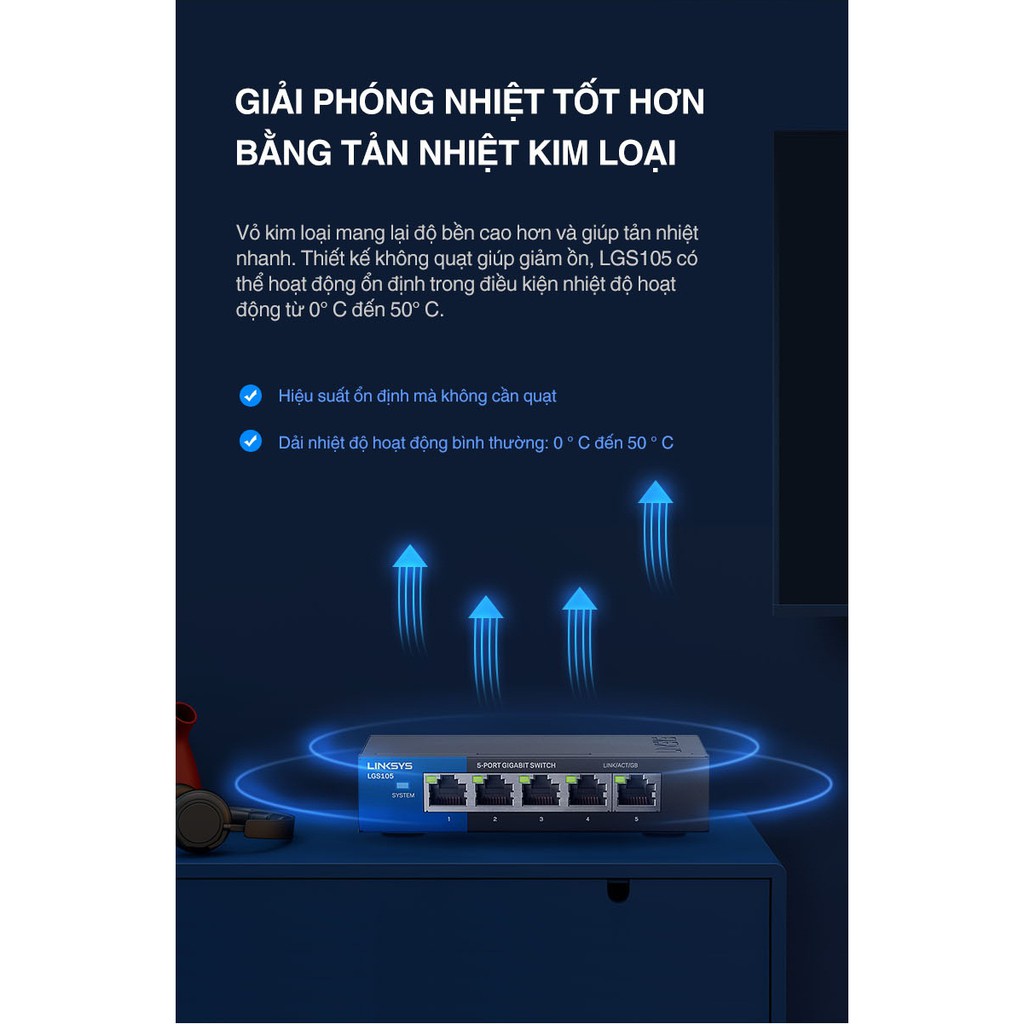 Thiết Bị Chia Mạng Linksys Switch LGS105 Unmanaged 5-Port Business Gigabit