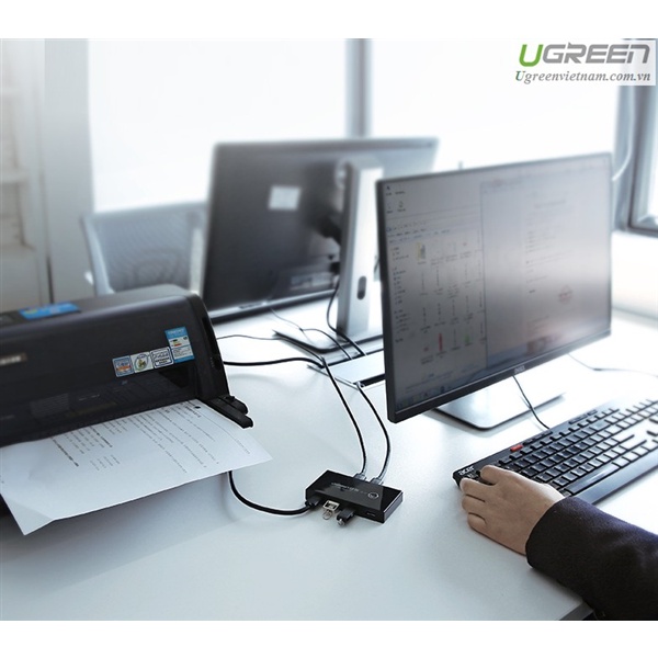 - Ugreen 30768 là phụ kiện cao cấp giúp kết nối, chia sẻ dùng chung nhiều thiết bị ngoại vi dùng cổng USB như máy in, máy quét, chuột, phím...etc cho hai máy tính riêng biệt. Bộ chuyển đổi USB 3.0 của Ugreen tích hợp một phím bấm nhanh và đèn led hiển thị giúp chuyển đổi kênh sử dụng một cách nhanh chóng và thuận tiện.