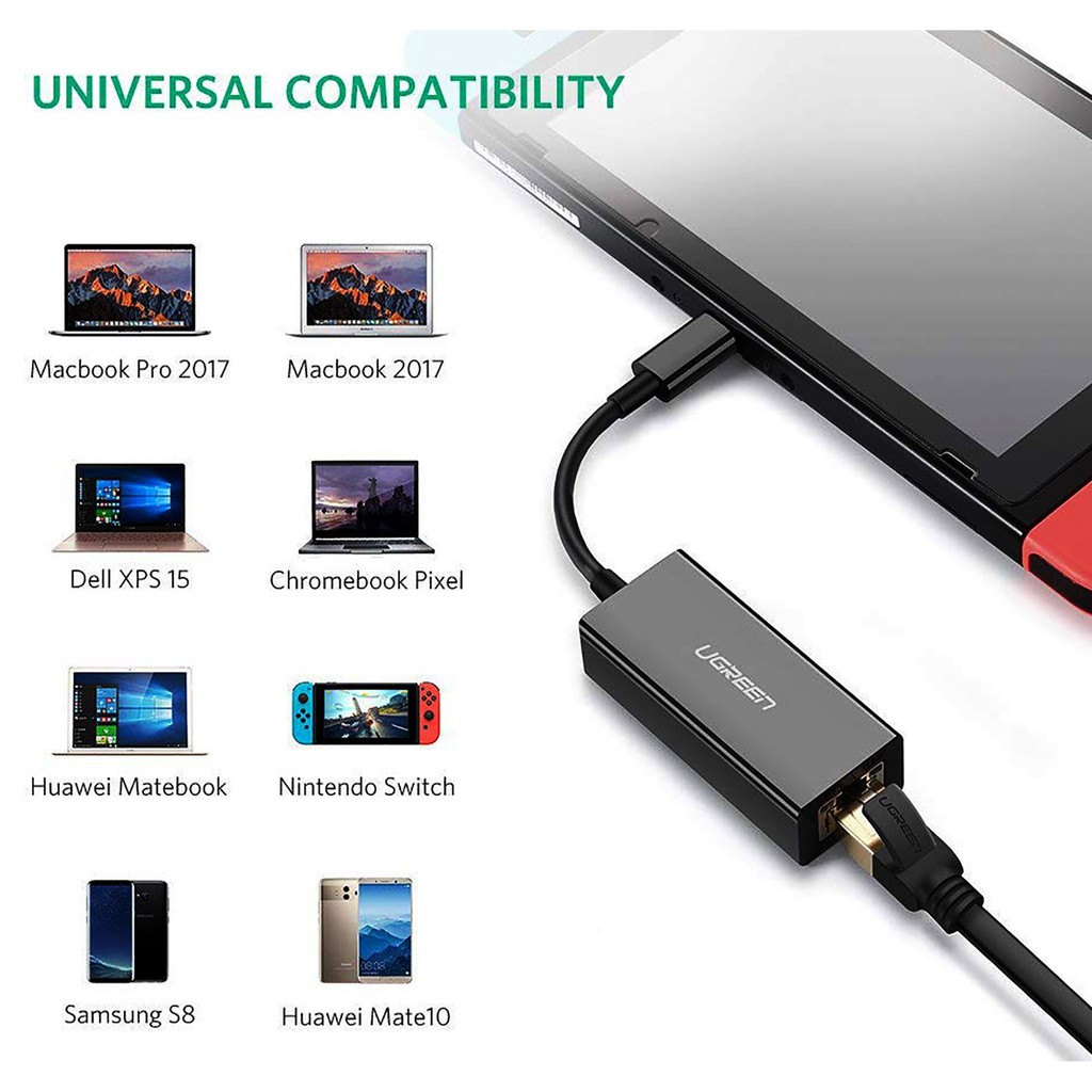 Thiết Bị Chuyển Đổi Tín Hiệu USB - C sang Lan Ugreen là dòng sản phẩm cao cấp giúp kết nối các thiết bị như Macbook 12 inch, , Google Chormebook Pixel ..v.v với Modem, Router ...