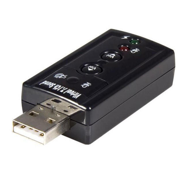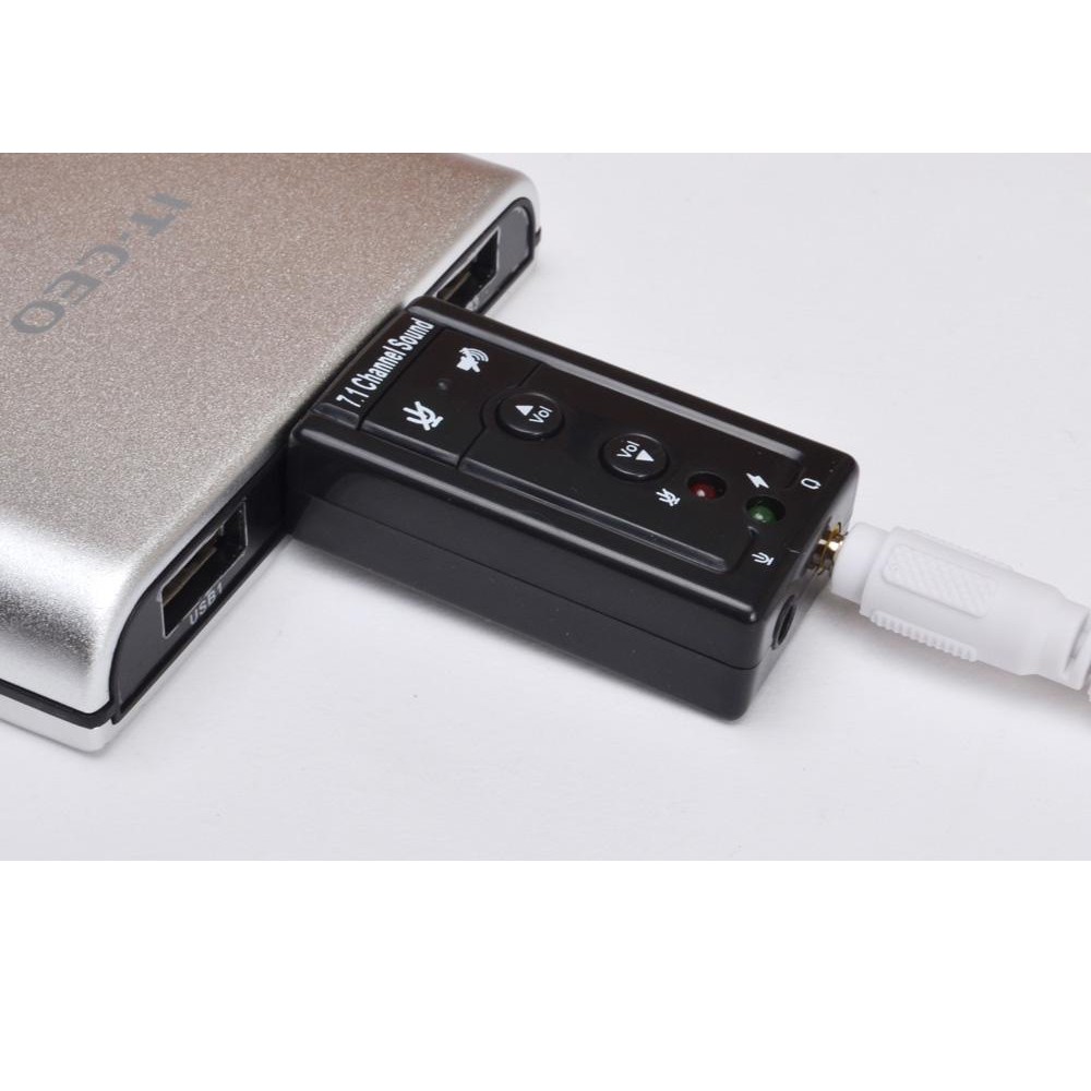 Card chuyển đổi âm thanh ảo USB 7.1 là một giao diện âm thanh với độ linh hoạt cao, có thể sử dụng cho cả máy tính bàn hoặc máy tính xách tay. Nếu như máy tính của bạn bị hỏng card âm thanh hay chỉ có 1 cổng cắm tai nghe, bạn có thể sử dụng thiết bị này để thay thế rất tiện lợi. Không cần đầu tư quá tốn kém, chỉ việc cắm cổng USB và sử dụng jack cắm tai nghe hoặc jack micro là bạn có thể tha hồ thưởng thức các bài hát yêu thích.
