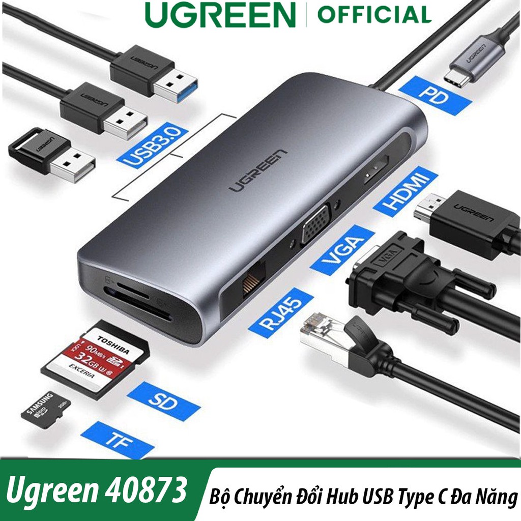 Thiết Bị Chuyển Đổi USB Type-C đến HDMI,VGA ,USB 3.0,Lan Gigabit,TF/SD Ugreen 40873 Chính Hãng🔰MÔ TẢ SẢN PHẨM