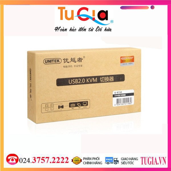 Bộ KVM USB 4-1 Unitek U8710 Chính HãngKVM switch Unitek USB 4 vào 1 ra là bộ chuyển mạch cho case máy tính sử dụng chung một màn hình, một bộ phím chuột cổng USB, một máy in