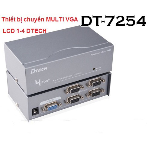 Dtech 7254 là thiết bị dùng để chia một nguồn dữ liệu video tới 4 màn hình VGA khác nhau, hiển thị dồng thời