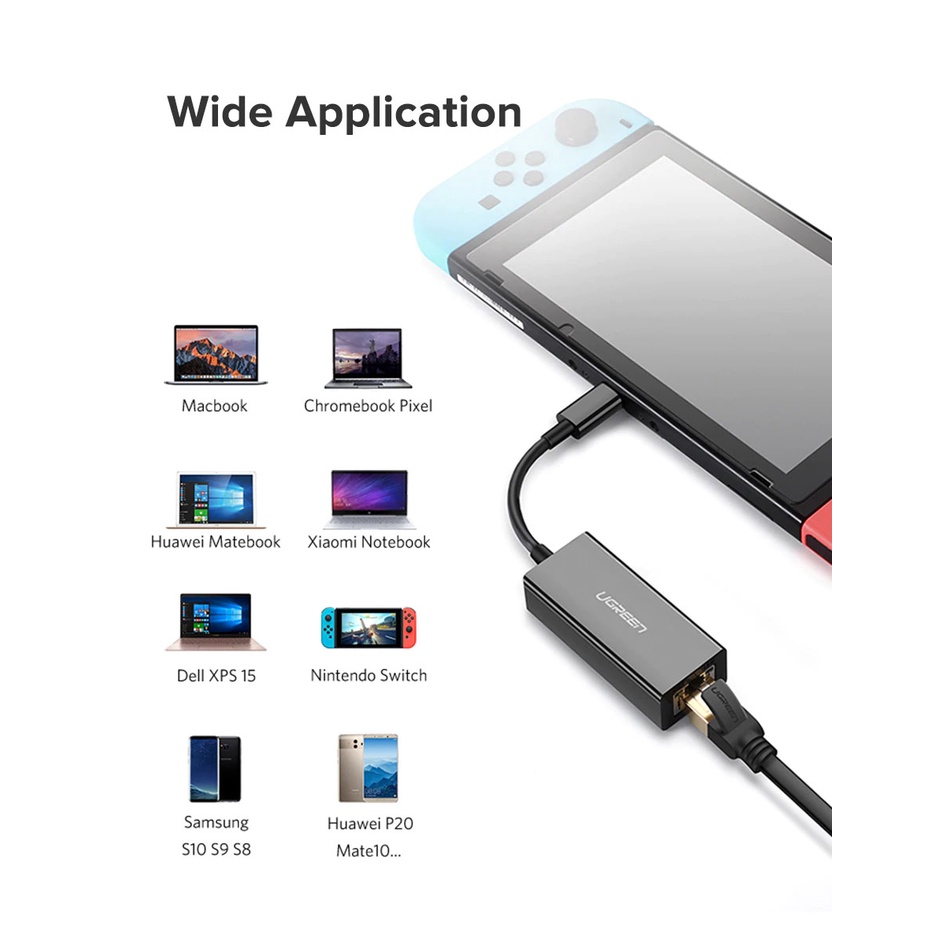 3)Ugreen 30287 ABS 100Mbps (Đen),AX88772A Chipset. (Phù hợp cho iPad Pro 2018/2020, iPad Air 4, không thích hợp cho Nintend ).