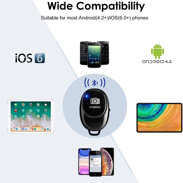 Màn trập Bluetooth được trang bị phần cứng công nghệ mới nhất, tương thích với hầu hết các máy ảnh gốc của hệ thống iPhone & iPad (ios 6.0 +) / Android (4.2+) và hầu hết các ứng dụng di động.