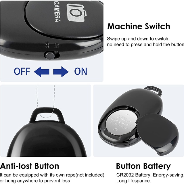 Thiết bị điều khiển chụp ảnh Bluetooth sử dụng pin CR2032 210mAh, có thể mang lại cho bạn đủ năng lượng và tuổi thọ lâu hơn.