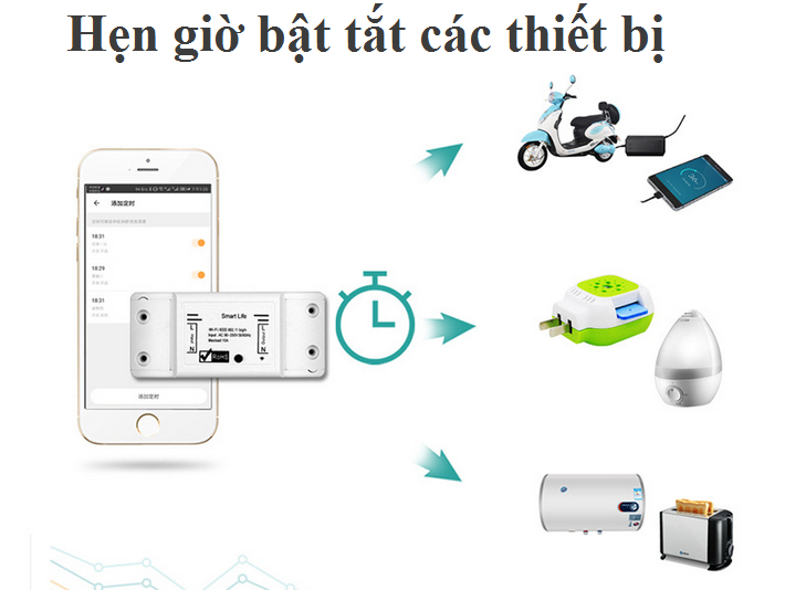 Điều khiển bật tắt các thiết bị điện thông qua app trên điện thoại IOS hoặc android ở bất kỳ đâu kết nối thông qua mạng intenet hoặc 3G/4G.