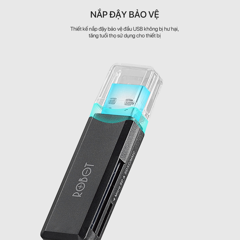Thiết Bị Đọc Thẻ Nhớ ROBOT CR102 USB 3.0 Khe Cắm Thẻ Nhớ SD Micro SD Hàng Chính Hãng Bảo Hành 12 Tháng 1 Đổi 1
