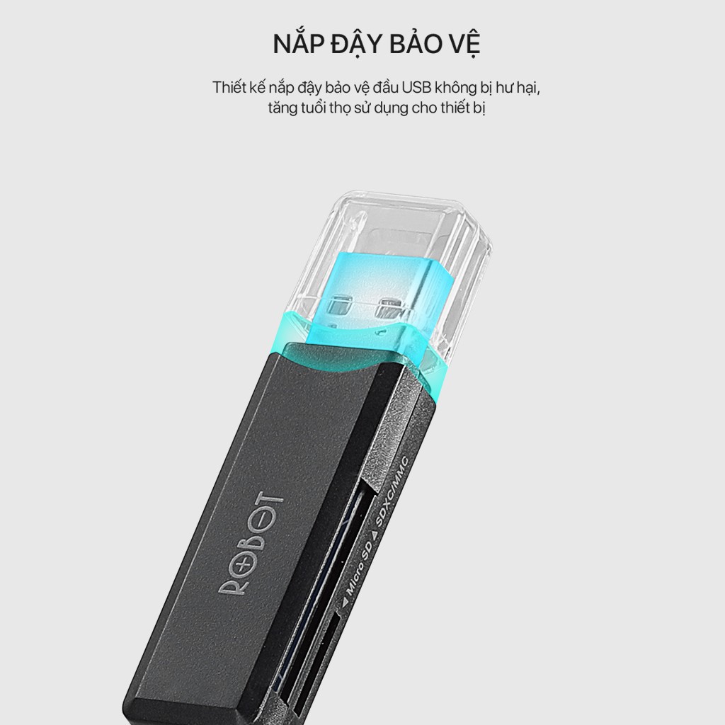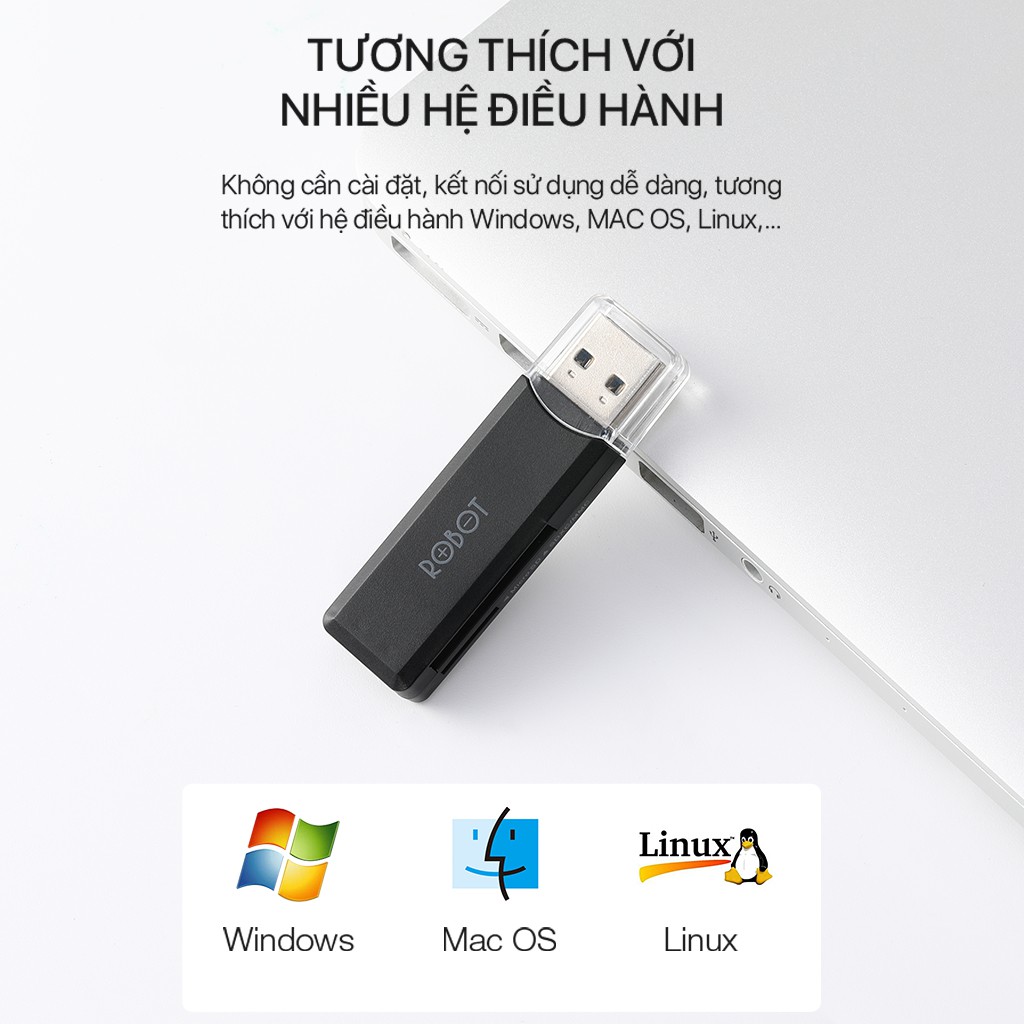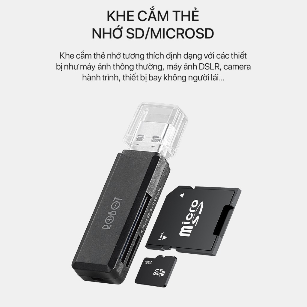 Thiết Bị Đọc Thẻ Nhớ ROBOT CR102 USB 3.0 Khe Cắm Thẻ Nhớ SD/Micro SDSản phẩm chính hãng ROBOT