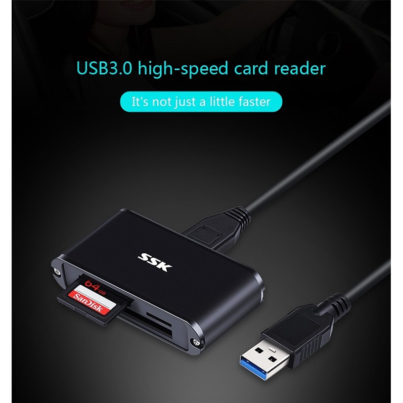 Thiết bị đọc thẻ nhớ SSK 3.0 SCRM 630 màu đen trong hộp thiếc
