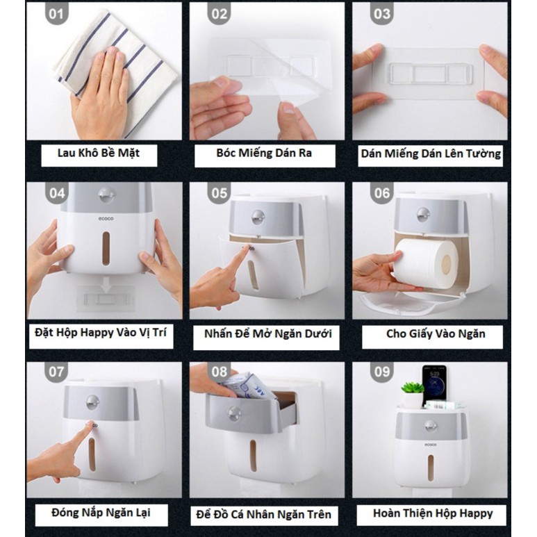 Thiết bị đựng giấy vệ sinh nhà tắm Happy chống nước - HanruiOffical